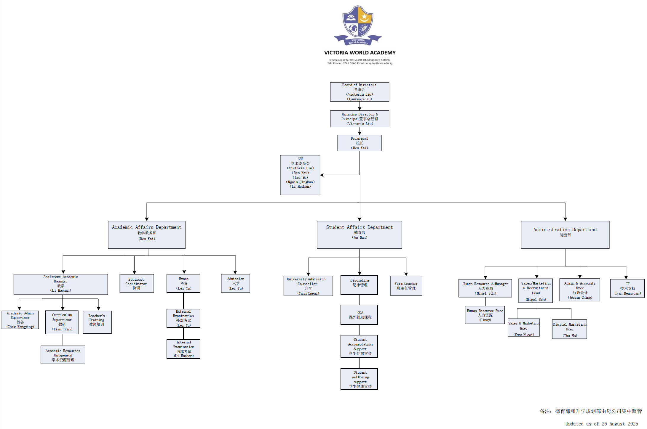 - Facilitating Victoria World Academy to implement and comply with the policies and procedures developed